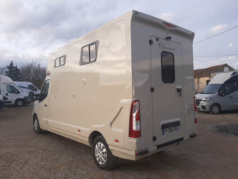 | - Description : | Dispo de suite Renault Master III, L3 - 145cv - 25/05/2020 - 24 800 kms Caméra de recul et habitacle Montée latérale, pont caoutchouc et 2 volets supérieurs Poitrail avec anneau d’attache et retour Séparation de tête amovible (pivotante + démontable) Bas flanc coulissant avec bavette 2 vitres coulissantes 600/400 sur cotés latéraux partie chevaux 2 vitres 600°250 1 vitre dans la sellerie 600°400 verticale 2 Aérateurs de toit 1 extracteur d’air Eclairage habitacle chevaux commandé depuis la cabine Tapis de sol caoutchouc Coussins latéraux et fessiers Caoutchoucs latéraux 2 anneaux d’attache extérieurs Sellerie fermée avec portillon Sellerie équipée Lumière dans la sellerie Bonde de vidange Camion gris silex avec « chevaux » sur l’avant et à l’arrière + notre publicité Garantie équipement 1 an Garantie mécanique 6 mois TVA Récupérable |