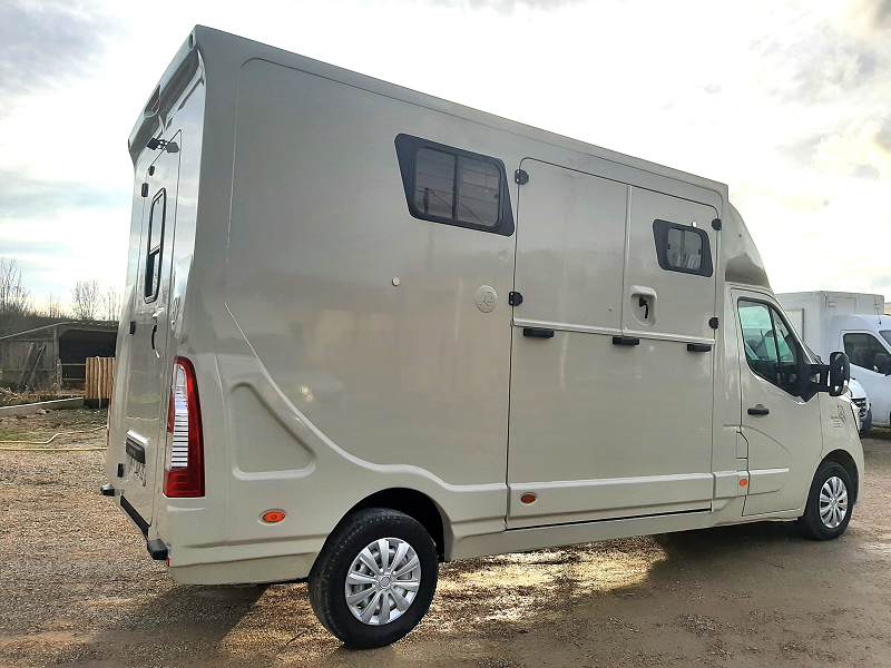 | - Description : | Renault Master III - L3 – 145 cv – 24 800 kms d'origine – 25/05/2020 Couchette Partie cabine : 3 places Caméra de recul et habitacle Clim Partie chevaux : Montée latérale, pont caoutchouc et 2 volets supérieurs Poitrail avec anneau d’attache et retour Séparation de tête amovible (pivotante + démontable) Bas flanc coulissant avec bavette 2 vitres coulissantes 600/400 sur cotés latéraux partie chevaux 2 vitres 600°250 1 vitre dans la sellerie 600°400 verticale 2 Aérateurs de toit 1 extracteur d’air Eclairage habitacle chevaux commandé depuis la cabine Tapis de sol caoutchouc Coussins latéraux et fessiers Caoutchoucs latéraux 2 anneaux d’attache extérieurs Sellerie fermée avec portillon Prise 220 et 12V Crochet d'attelage Lumière dans la sellerie Bonde de vidange Camion gris silex avec « chevaux » sur l’avant et à l’arrière + notre publicité Garantie équipement 1 an Garantie mécanique 6 mois TVA Récupérable |