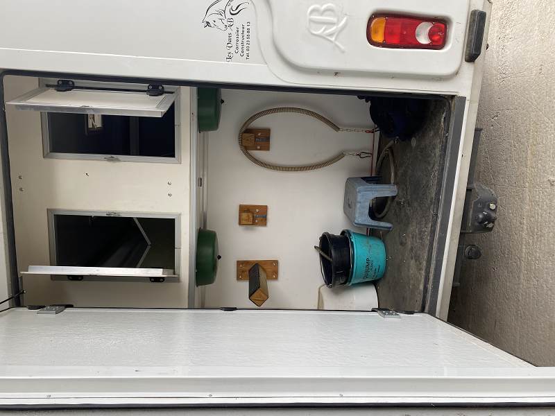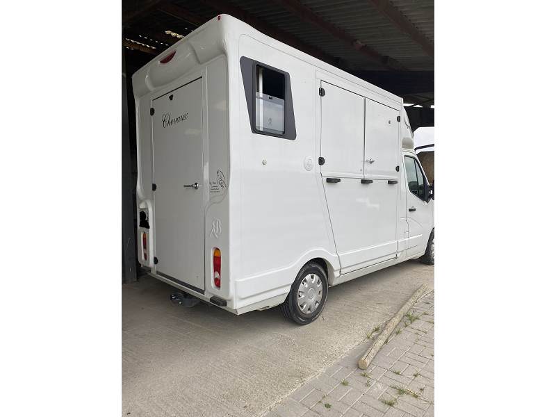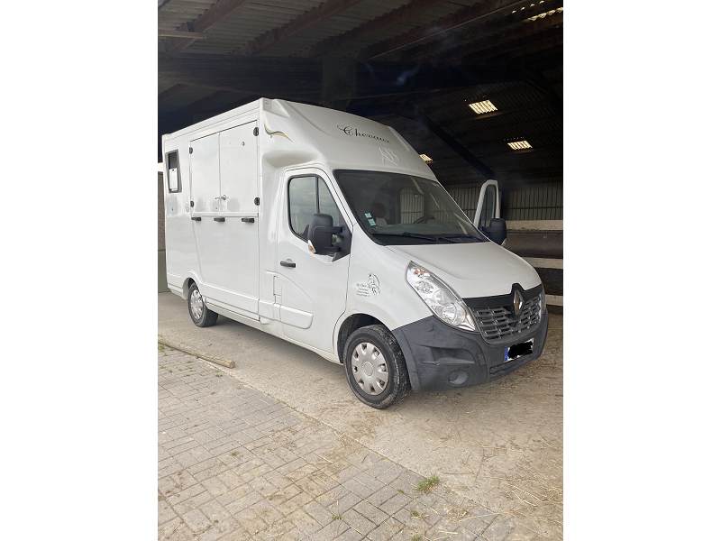 - Description : | Renault Master III - L2 – 130cv – 111 276kms (évolutifs) – 2017 Partie Cabine : • 3 places • Caméra de recul et habitacle • Clim Partie chevaux : • Montée latérale, pont caoutchouc et 2 volets supérieurs • Poitrail et retour avec anneau d’attache • Coussins latéraux et fessiers • Séparation de tête • Bas flanc pivotant et démontable avec bavette • 2 vitres coulissantes 600/400 sur cotés latéraux • 2 Aérateurs de toit • Eclairage habitacle chevaux commandé depuis la cabine • Sol en caoutchouc • Caoutchoucs latéraux • 2 anneaux d’attache extérieurs • Sellerie fermée avec portillons • Crochet d’attelage Garantie mécanique 6 mois et équipement 6 mois |